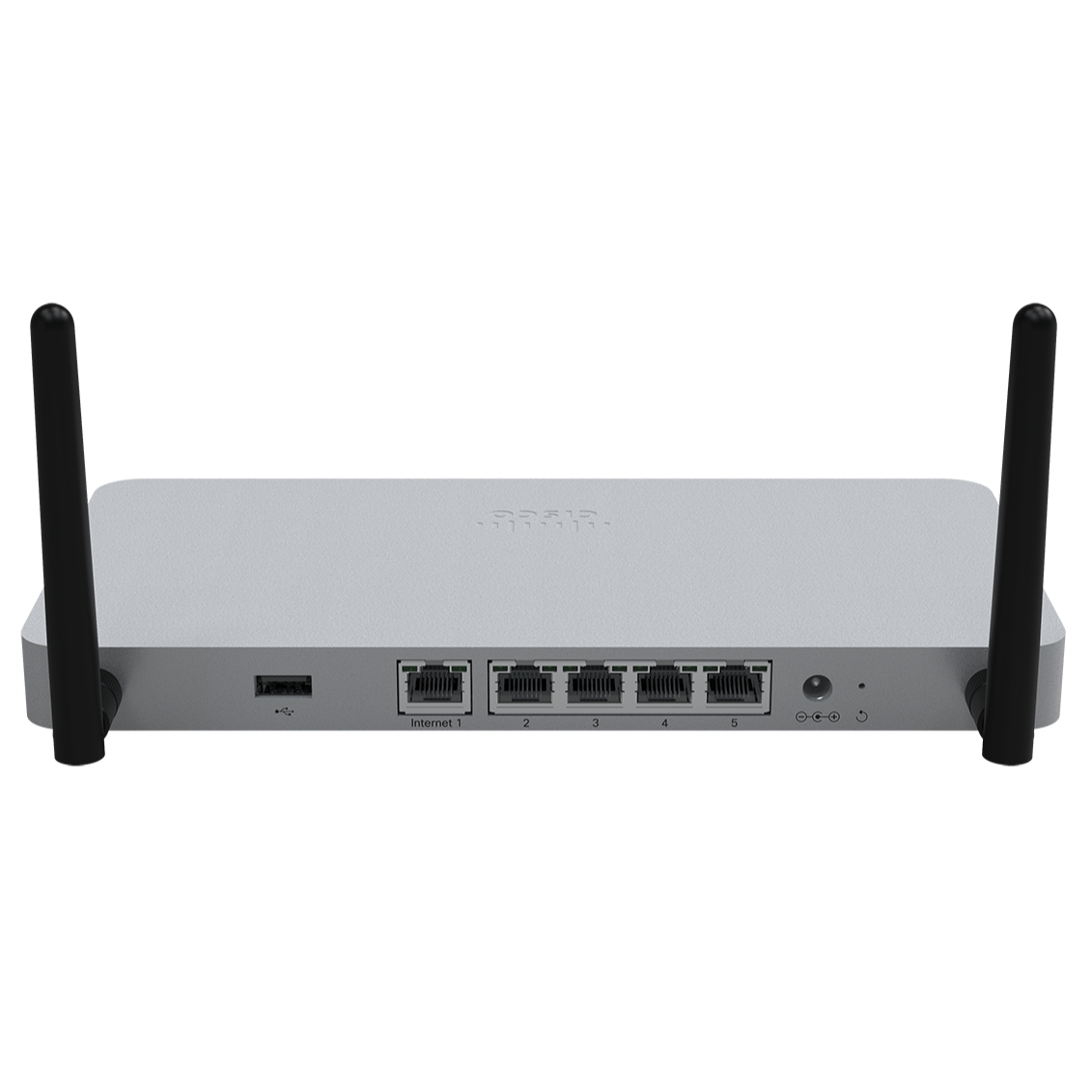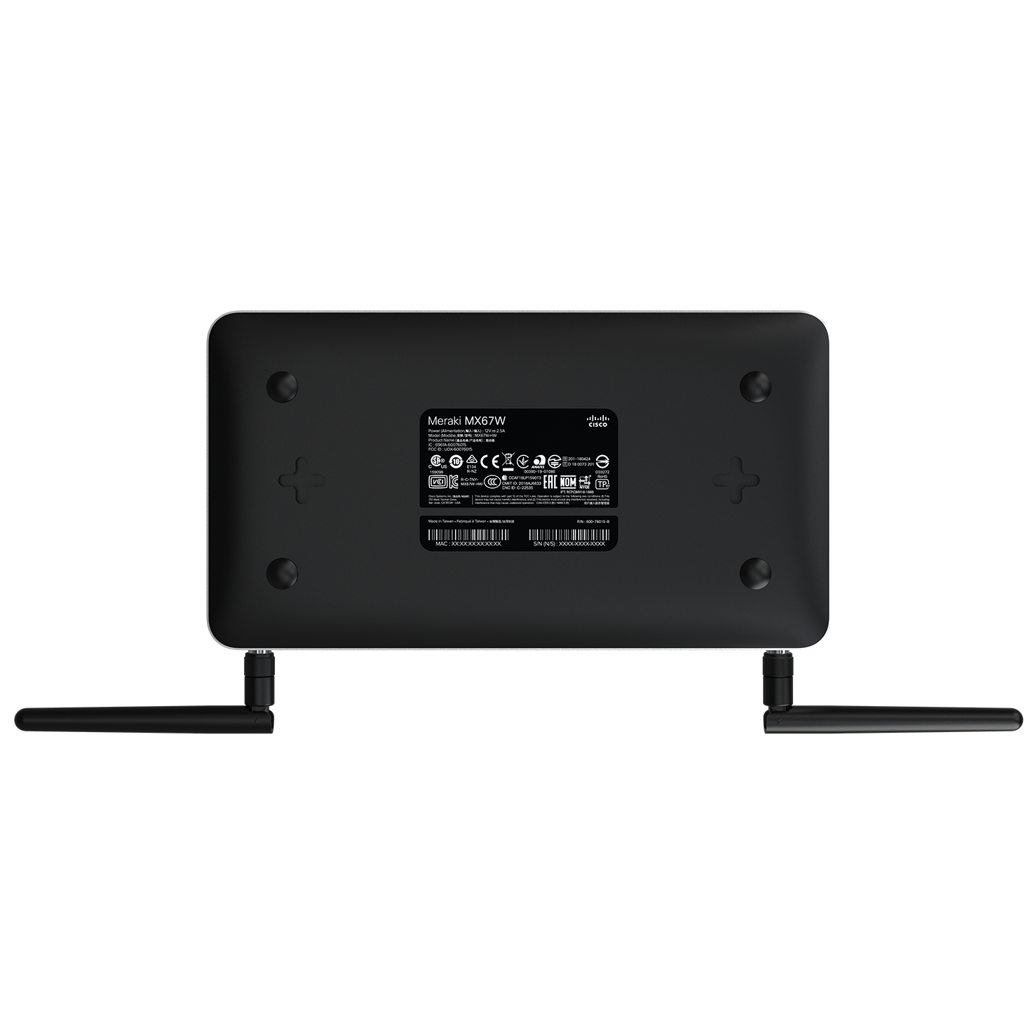 Le MX67W de Cisco Meraki est une solution tout-en-un révolutionnaire qui combine un pare-feu de nouvelle génération, des capacités SD-WAN avancées et un point d'accès Wi-Fi intégré dans un format desktop compact. Conçu pour les petites entreprises et les sites distants, cet appareil offre une protection complète avec un débit firewall jusqu'à 700 Mbps.