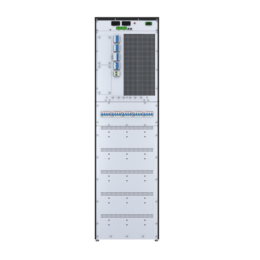 Avec ses dimensions compactes de 820 x 500 x 1750 mm et son design tour, cet onduleur s'intègre facilement dans vos salles informatiques et centres de données. L'espace prévu pour batteries internes permet une configuration flexible selon vos besoins d'autonomie.