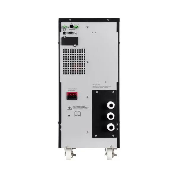 Le 9SX6KI intègre 20 batteries plomb-acide scellées de 12V/7Ah offrant une autonomie extensible grâce à la possibilité d'ajouter des modules de batteries externes. Son facteur de puissance de sortie de 0,9 et son facteur de puissance d'entrée supérieur à 0,99 garantissent une efficacité maximale.