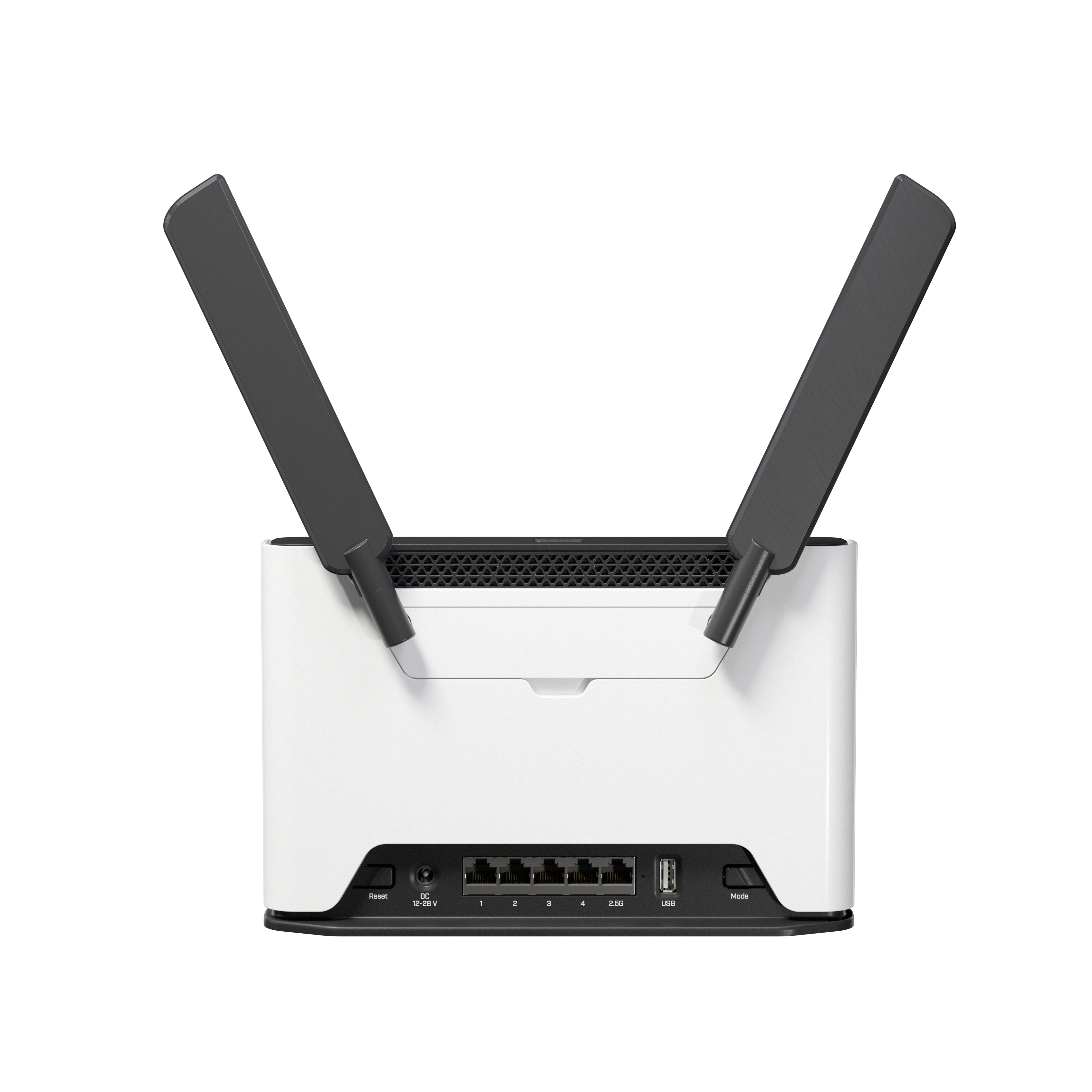 Le Chateau 5G R17 ax représente l'évolution ultime du routeur domestique 5G de MikroTik. Équipé d'un modem 5G Release 17 de dernière génération et du WiFi 6 bi-bande, ce routeur offre une connectivité instantanée même sans carte SIM physique grâce à la technologie eSIM intégrée.