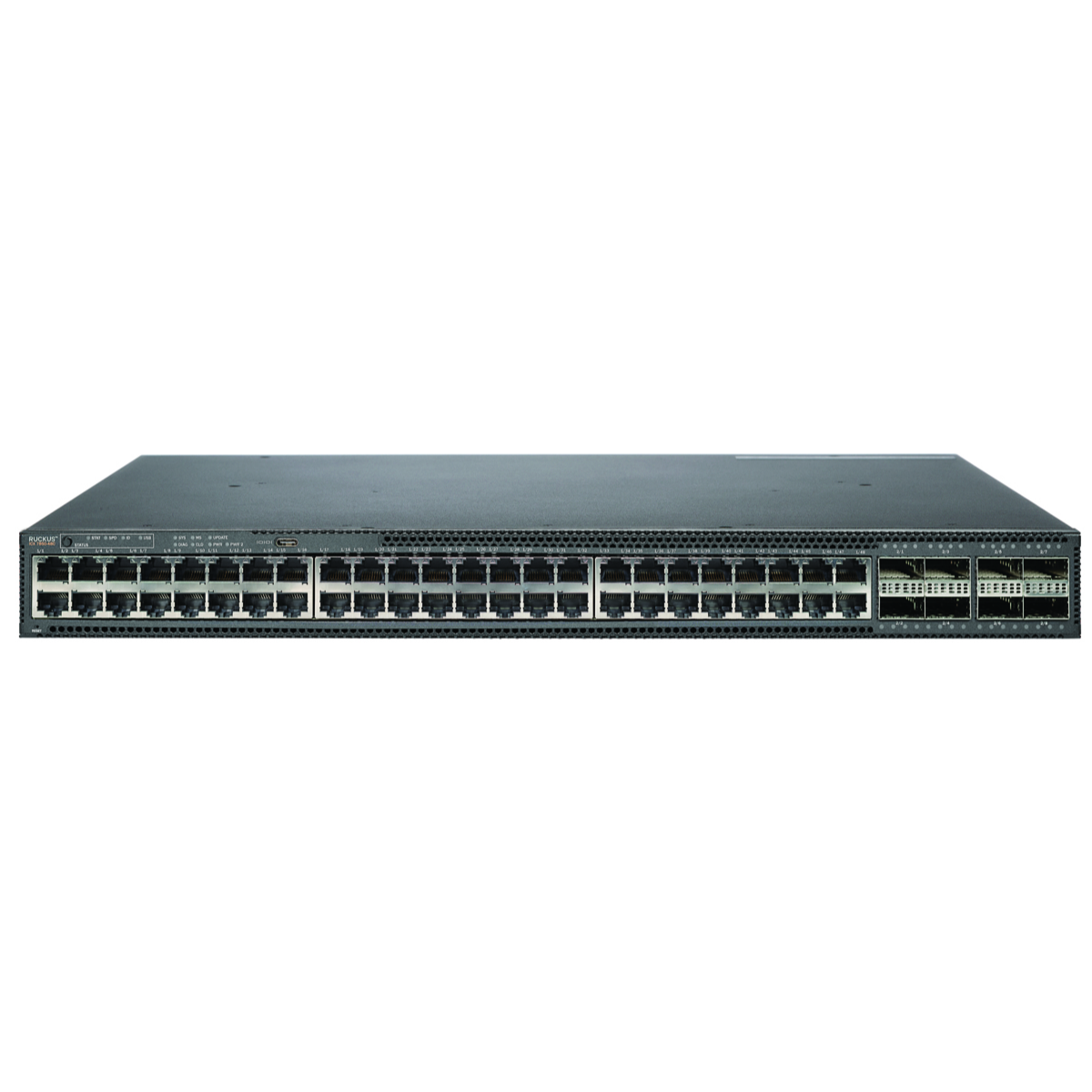 Le switch RUCKUS ICX 7850-48C est un commutateur d'agrégation haute performance conçu pour répondre aux exigences des réseaux d'entreprise modernes. Équipé de 48 ports cuivre 1/10 GbE (10GBASE-T) et de 8 ports 40/100 GbE QSFP28, ce switch offre une capacité de commutation impressionnante de 2,56 Tbps pour gérer les volumes de trafic les plus importants.